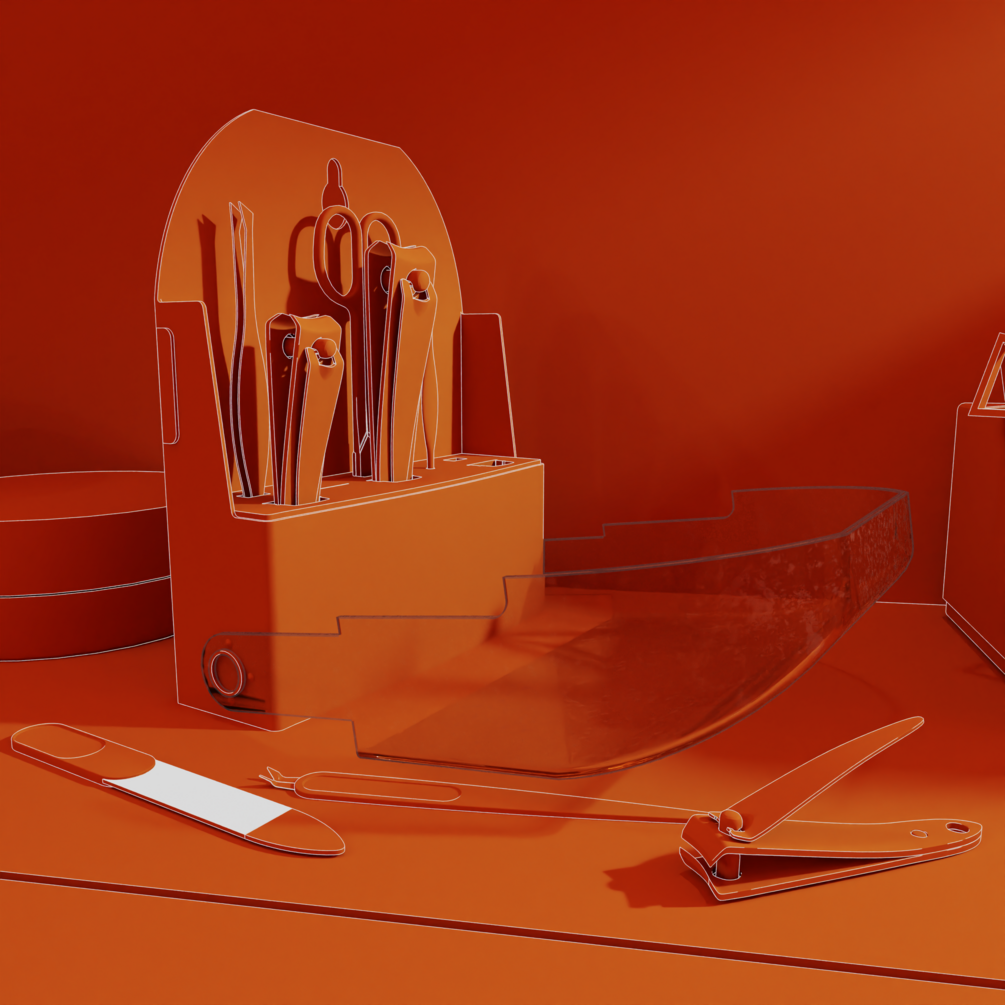 Created in SketchUp and Rendered in V-Ray 6 for SketchUp I had bought this Manicure Box Set with my first every paycheck! The shape of this box is so unique and interesting, it was an awesome experience to model in SketchUp.