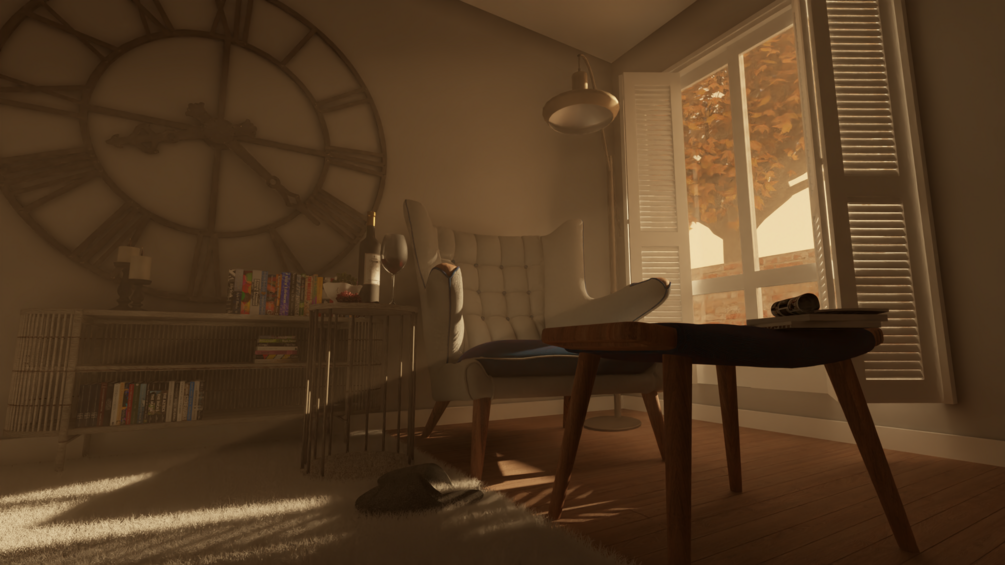 I made this model as a self-project. While starting on this project I wanted to work more on the floor lamp, but after putting this contemporary European window my perspective changed to natural light coming through the window. This window creates a feeling of outside looking in. The freshness of the morning rays creates an uplifting environment for the reader.
